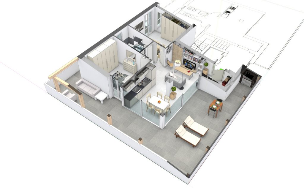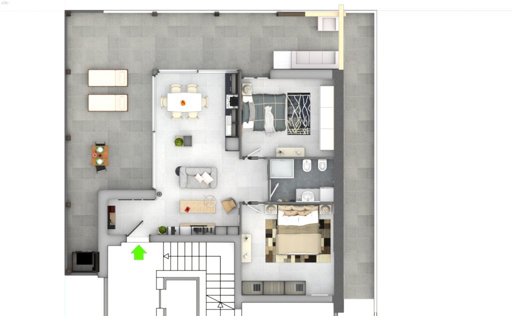 Attico in vendita di nuova costruzione a Subbiano (Arezzo) di 144mq totali divisi tra 73mq zona interna e 70mq di zona outdoor (terrazzo/balcone).