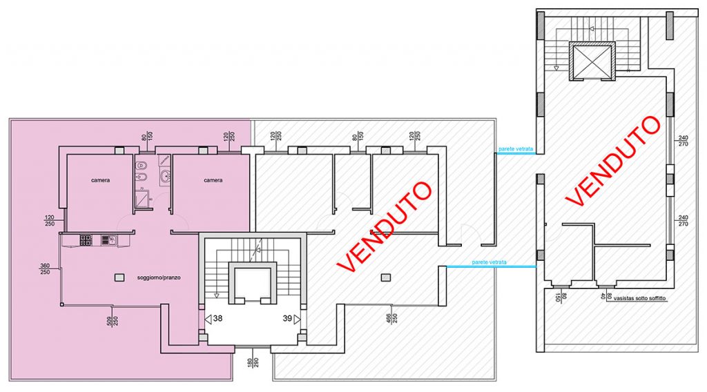 L’appartamento è abbinato ad 1 box auto da 37mq ed 1 posto auto.