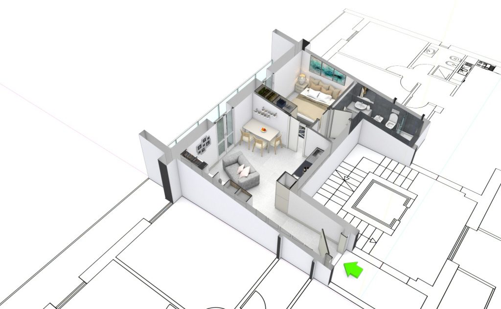 Appartamento in vendita di nuova costruzione a Subbiano (Arezzo) di 55mq totali divisi tra 44mq zona interna e 11mq di zona outdoor (terrazzo/balcone).